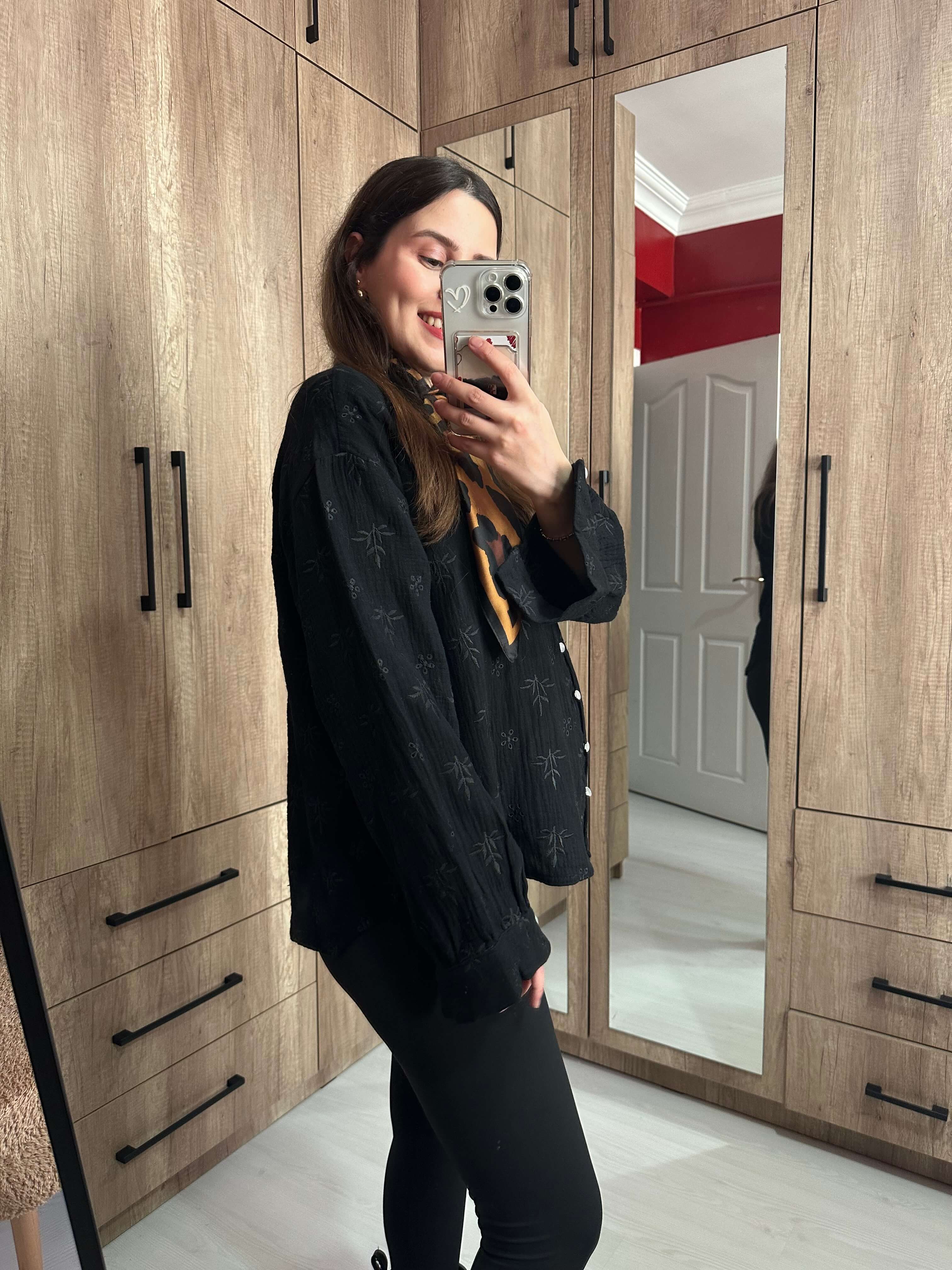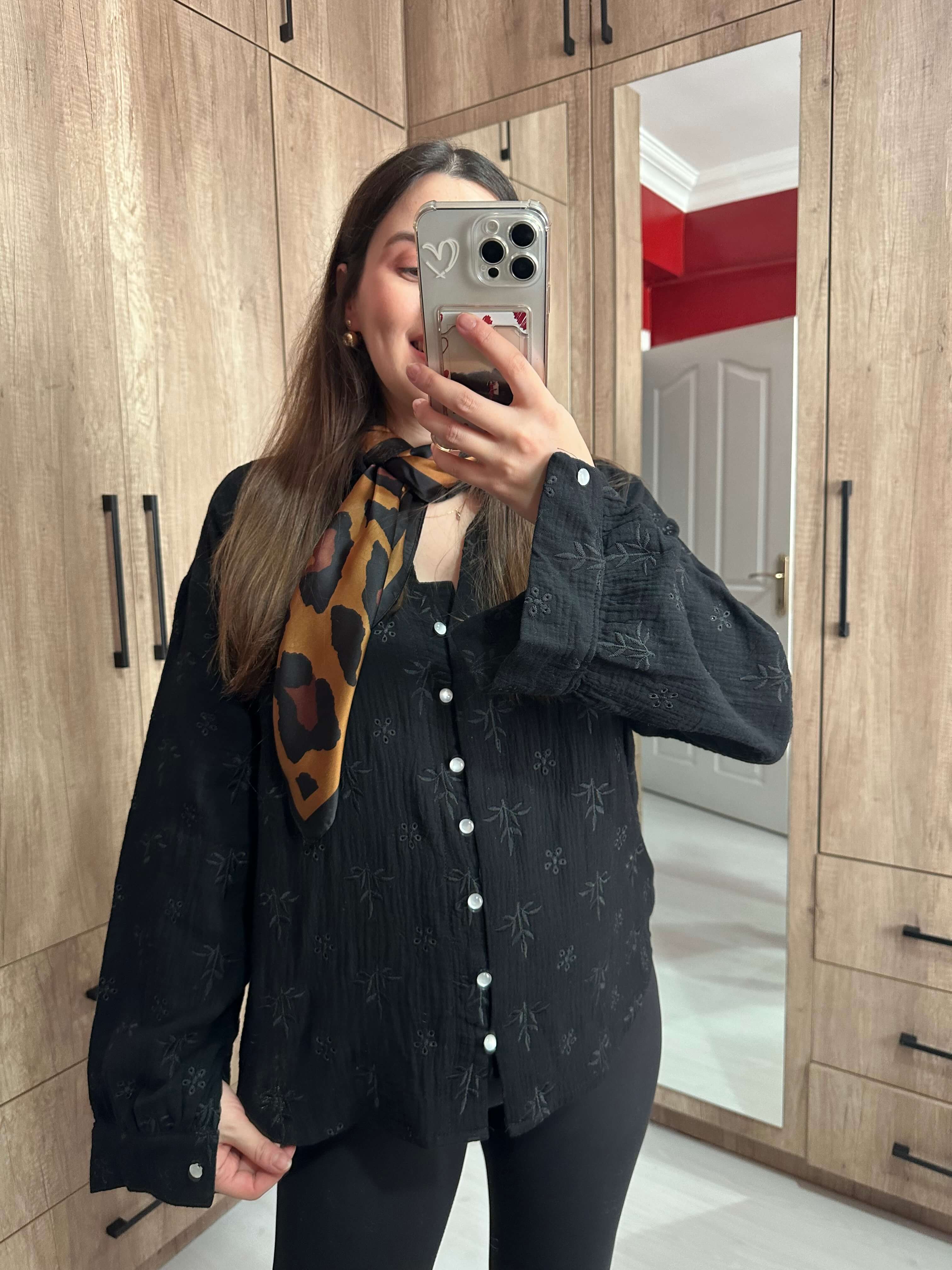 Ürün Kodu: Ün-Gömlek-0027 Renk; Siyah Model bilgisi; 160 cm 50 kg Çekimde S beden kullanılmıştır. TL690.00